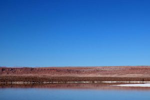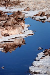 Piscinas naturais, lagoas, gêiseres e lagos de sal ocupam os espaços onde um dia esteve o mar que alimentou e ajudou na sobrevivência de antigos povoados que ousaram fazer desse pequeno infinito sua casa. Hoje, esse infinito se apresenta para nós no encontro entre os tons rochosos, o branco e o azul infindável do céu e dos lagos, que, por vezes, se espelham e parecem se confundir como um só. Como nessa fotografia.